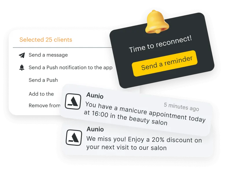يتلقى عملاؤك إشعارات فورية حول المواعيد والخصومات مباشرةً على أجهزتهم، مما يبقيهم على اطلاع وتفاعل مع خدماتك.