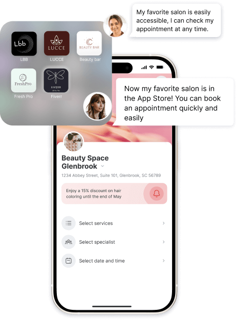 باستخدام Altegio، يمكنك بسهولة إنشاء تطبيقك الخاص لنشاطك التجاري وإتاحته على متجر التطبيقات App Store وGoogle Play، مما يعزز ولاء العملاء ومشاركتهم!