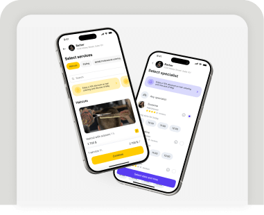 قم بتخصيص تطبيق صالونك وصفحة الحجز الخاصة بك، مما يجعلها متاحة على متجر التطبيقات أو جوجل بلاي، في 30 دقيقة فقط.