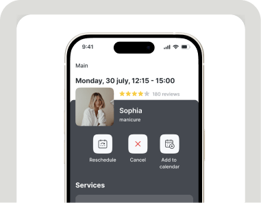باستخدام Altegio يمكنك تخصيص تصميم وتفاصيل الخدمات المقدمة عبر الإنترنت بالكامل، بما في ذلك العروض الترويجية الحصرية