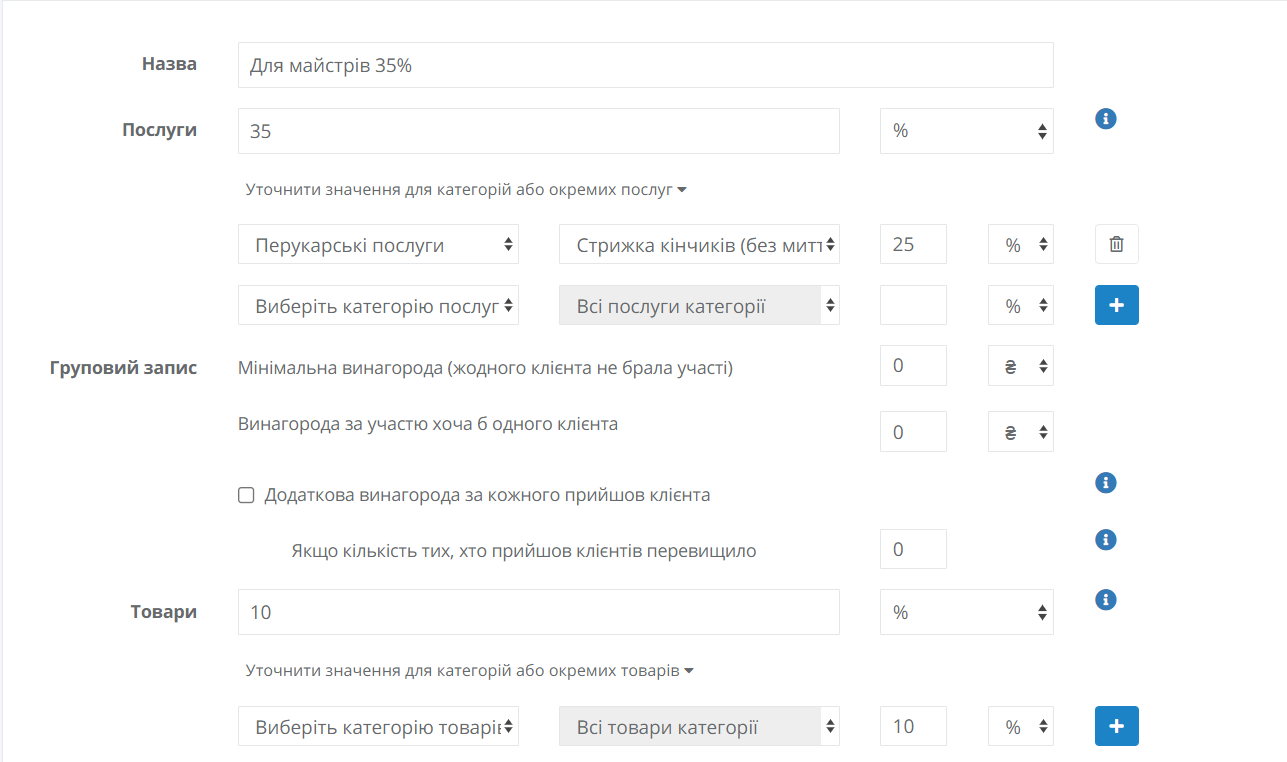 Aplique diferentes percentuais dependendo da categoria de produtos e serviços