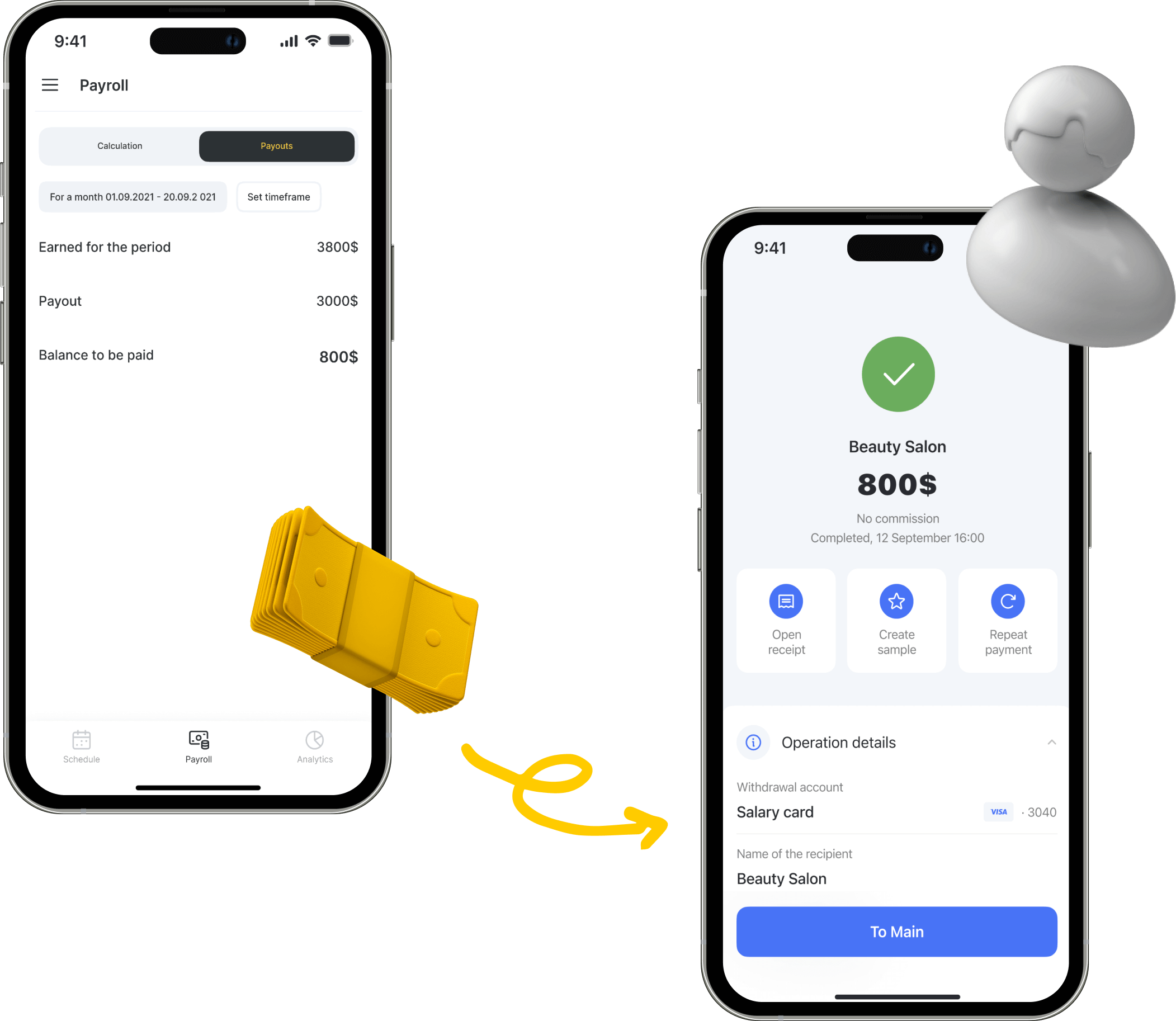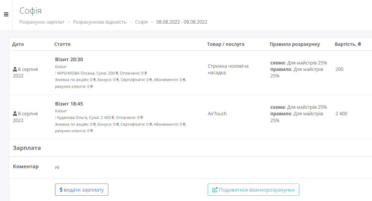 Você vai precisar de menos de 1 minuto para verificar o pagamento de cada colaborador da sua equipe, porque o Altegio já entrega pronto.