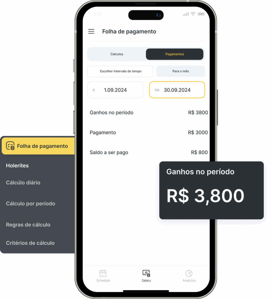 O sistema mantém registros de pagamentos de qualquer período — não haverá desacordos com os funcionários