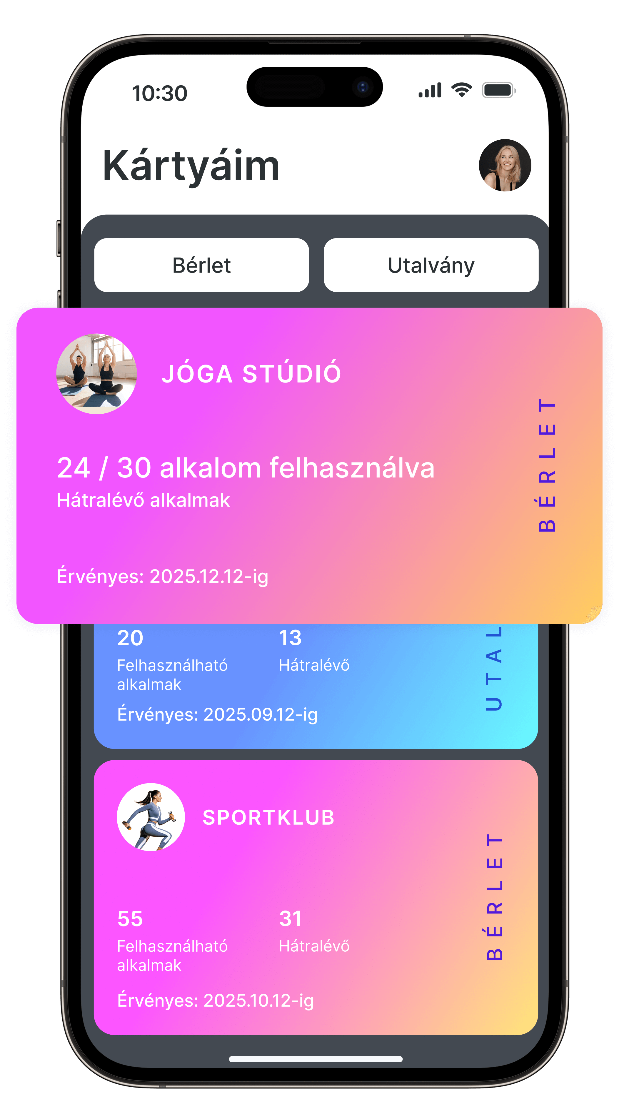 Időben korlátozható – beállíthatod, hogy meddig legyen érvényes a bérlet.